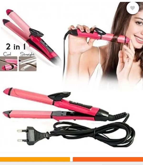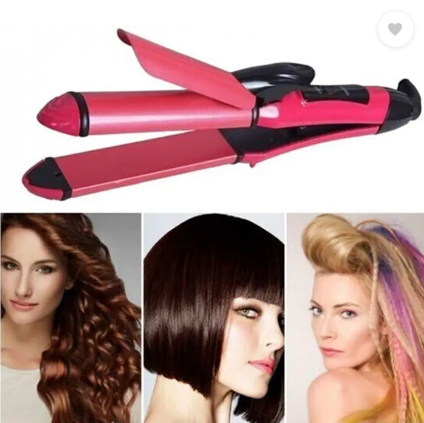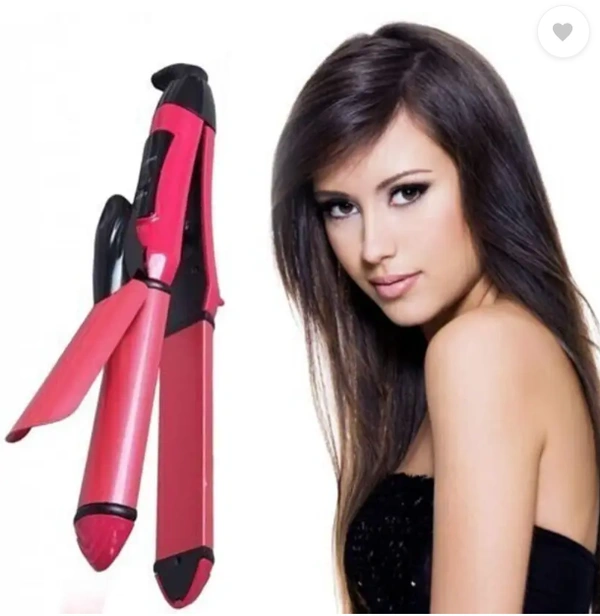 Totthar Curler Machine For Women | Curl & Straight Iron 0385-2 in 1 Hair Straightener (Pink)